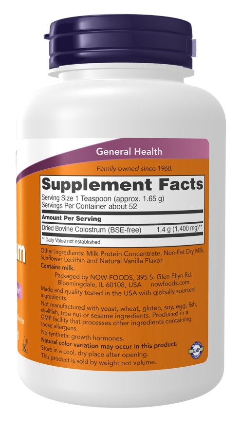 Colostrum is the nourishing fluid produced by mammals as food for the newborn in the few days after birth, before milk production begins. This bovine-derived food supplement offers a variety of biologically active proteins, including immunoglobulins, lactoferrin, and other factors that support the maintenance of lean muscle tissue, as well as a healthy immune system.* Scientific studies have shown that colostrum may help to enhance bioavailability and absorption of nutrients into the body, while promoting healthy gastrointestinal function.*