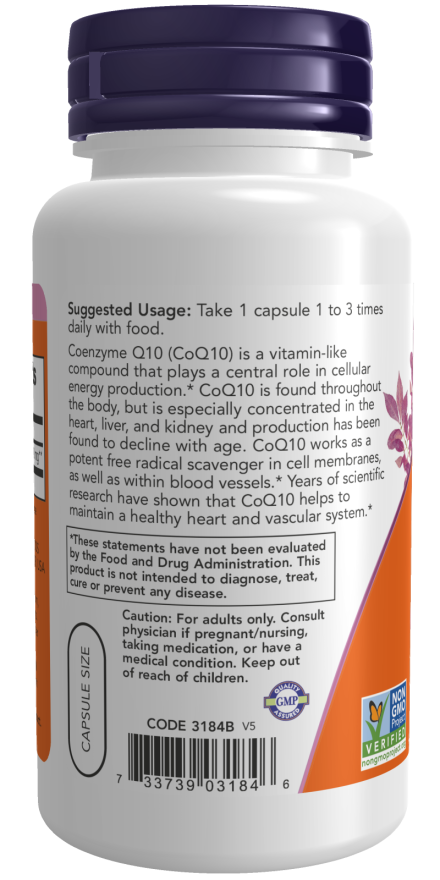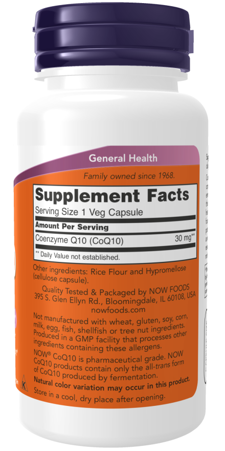 NOW® CoQ10 is pharmaceutical grade. NOW CoQ10 products contain only the all-trans form of CoQ10 produced by fermentation.