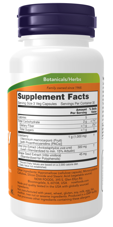 Cranberry has become an essential component in the promotion of sound urinary tract health.* Cranberry has naturally occurring compounds called proanthocyanidins (PACs) that help to maintain a clean waste stream.* This product makes it simple to support healthy urinary tract function, with each serving delivering 1,000 mg of cranberry.* For added support, we’ve also included 300 mg of uva ursi extract and 45 mg of grape seed extract.