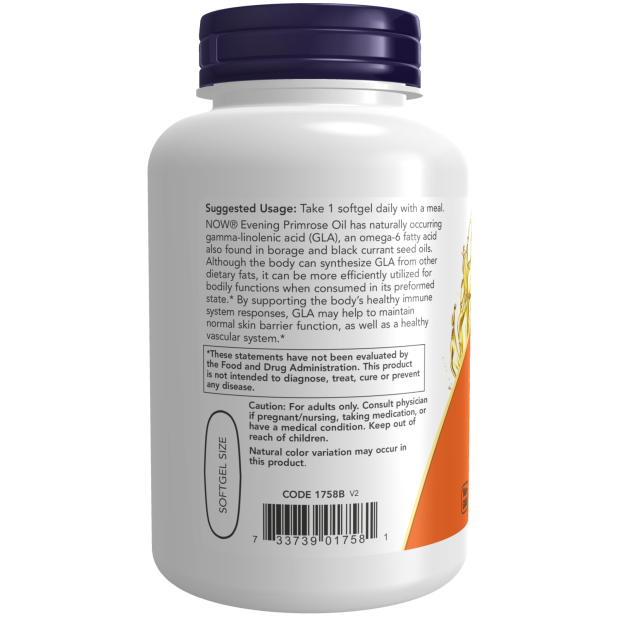 NOW® Evening Primrose Oil has naturally occurring gamma-linolenic acid (GLA), an omega-6 fatty acid also found in borage and black currant seed oils. Although the body can synthesize GLA from other dietary fats, it can be more efficiently utilized for bodily functions when consumed in its preformed state.* By supporting the body’s healthy immune system responses, GLA may help to maintain normal skin barrier function, as well as a healthy vascular system.*