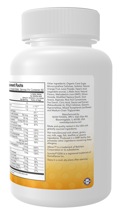 Other Ingredients: Organic Cane Sugar, Microcrystalline Cellulose, Sorbitol, Natural Orange Fruit Juice Powder, Stearic Acid (vegetable source), L-Malic Acid, Natural Flavors, Maltodextrin (non-GMO), Silicon Dioxide, Modified Tapioca Starch, Gum Acacia, Alginate, Rice Hull Concentrate, Pea Starch, Citric Acid, Stevia Leaf Extract (Rebaudioside A), Ethyl Cellulose, Glycerin, Hypromellose, Mixed Tocopherols (sunflower) and Medium-Chain Triglycerides.