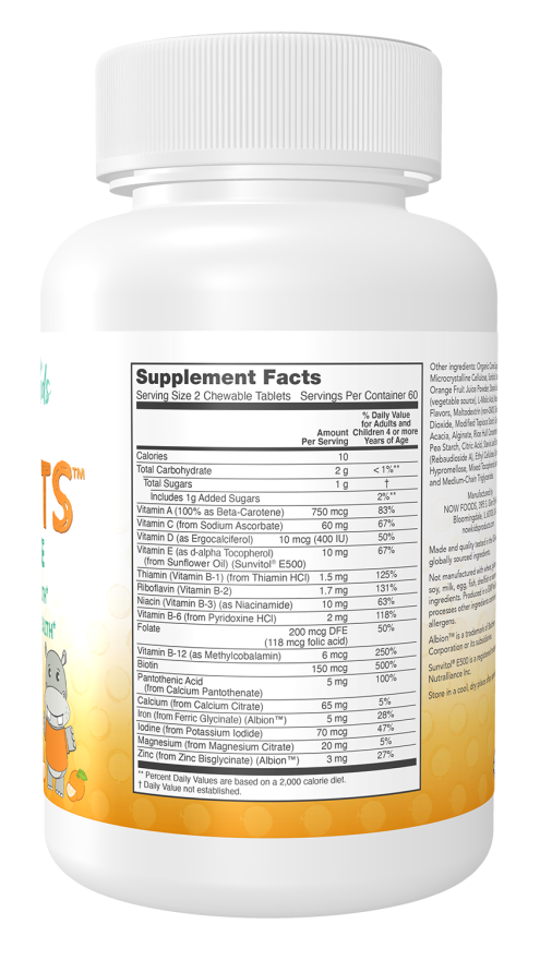 Children ages 4 and up: Take 2 chewable tablets daily with food.