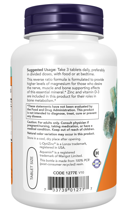 This reverse ratio formula is formulated to provide higher levels of magnesium for those who desire the nerve, muscle and bone supporting effects of this essential mineral.* Zinc and vitamin D-3 are included in this product for their roles in bone metabolism.*