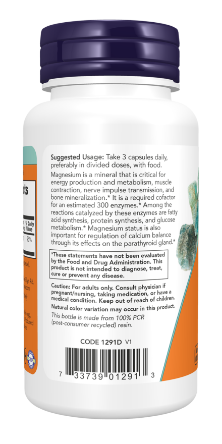 Magnesium is a mineral that is critical for energy production and metabolism, muscle contraction, nerve impulse transmission, and bone mineralization.* It is a required cofactor for an estimated 300 enzymes.* Among the reactions catalyzed by these enzymes are fatty acid synthesis, protein synthesis, and glucose metabolism.* Magnesium status is also important for regulation of calcium balance through its effects on the parathyroid gland.*