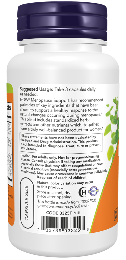 NOW® Menopause Support has recommended potencies of key ingredients that have been shown to support a healthy response to the natural changes occurring during menopause.* This blend includes standardized herbal extracts and other nutrients which, together, form a truly well-balanced product for women.*