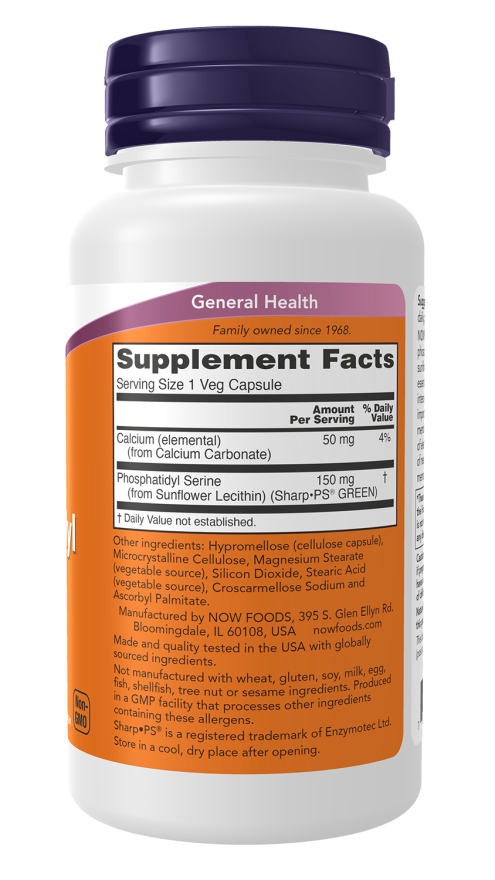 NOW® Soy-Free Phosphatidyl Serine is a phospholipid compound derived from non-GMO sunflower lecithin. Phosphatidyl serine plays an essential role in cell membrane composition and intercellular communication.* It is an especially important structural component of nerve cell membranes, where it assists in the conduction of electrical impulses and facilitates the activity of neurotransmitters involved in learning, memory, and mood.*