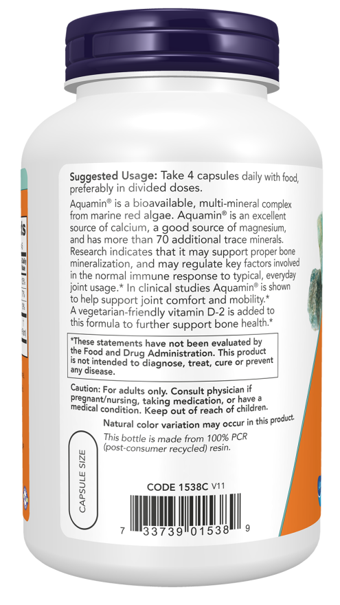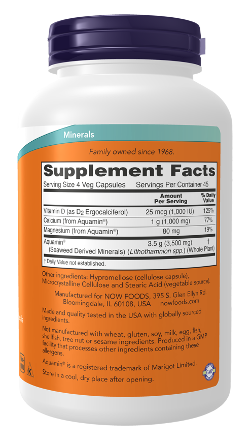 Aquamin® is a bioavailable, multi-mineral complex from marine red algae. Aquamin® is an excellent source of calcium, a good source of magnesium, and has more than 70 additional trace minerals. Research indicates that it may support proper bone mineralization, and may regulate key factors involved in the normal immune response to typical, everyday joint usage.* In clinical studies Aquamin® is shown to help support joint comfort and mobility.* A vegetarian-friendly vitamin D-2 is added to this formula to further support bone health.*