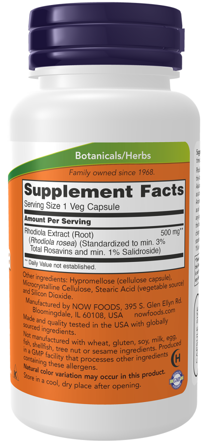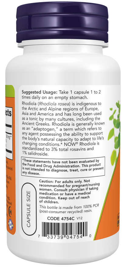 Rhodiola (Rhodiola rosea) is indigenous to the Arctic and Alpine regions of Europe, Asia and America and has long been used as a tonic by many cultures, including the Ancient Greeks. Rhodiola is generally known as an “adaptogen,” a term which refers to any agent possessing the ability to support the body’s natural capacity to adapt to life’s changing conditions.* NOW® Rhodiola is standardized to 3% total rosavins and 1% salidroside.