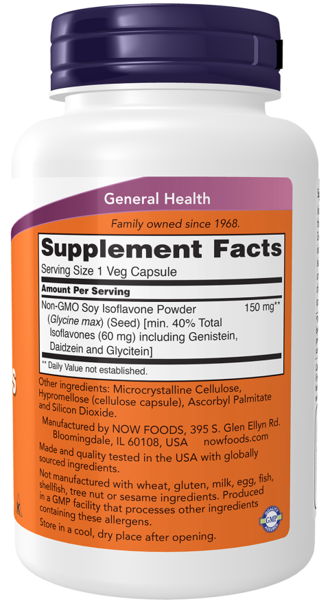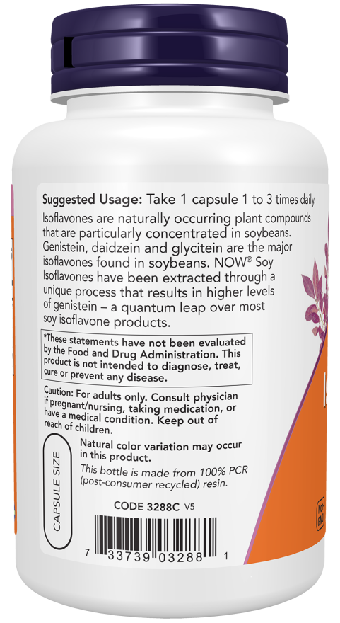 Isoflavones are naturally occurring plant compounds that are particularly concentrated in soybeans. Genistein, daidzein and glycitein are the major isoflavones found in soybeans. NOW® Soy Isoflavones have been extracted through a unique process that results in higher levels of genistein - a quantum leap over most soy isoflavone products.