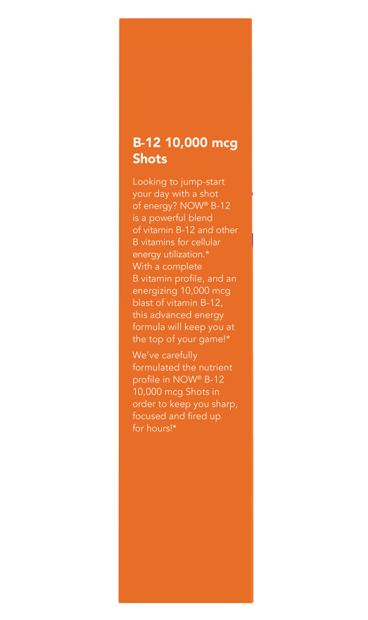We've carefully formulated the nutrient profile in NOW® B-12 10,000 mcg Shots in order to keep you sharp, focused, and fired-up for hours!*