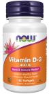 NOW® Vitamin D3 softgels supply this key vitamin in a highly absorbable liquid softgel form. Vitamin D is normally obtained from the diet or produced by the skin from the ultraviolet energy of the sun. However, it is not abundant in food. As more people avoid sun exposure, vitamin D supplementation becomes even more necessary to ensure that your body receives an adequate supply.