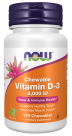 NOW® Chewable Vitamin D3 supplies this key vitamin in a tasty chewable form. Vitamin D is normally obtained from the diet or produced by the skin from the ultraviolet energy of the sun. However, it is not abundant in food. As more people avoid sun exposure, Vitamin D supplementation becomes even more necessary to ensure that your body receives an adequate supply.