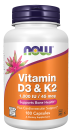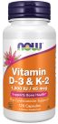 NOW combines two nutrients extensively researched for their contribution to the health of bones, teeth and the cardiovascular system.* Vitamin D3 promotes calcium transport and absorption.* Recent studies indicate that vitamin D3 may play a role in proper insulin action and glucose metabolism and has an important function within the immune system.* Vitamin K is critical for the formation of a healthy, strong bone matrix.* Vitamin K's role in arterial health revolves around its ability to support proper calcium metabolism in vascular structures.* Vitamin K2 is a readily active and biologically available form of vitamin K.*